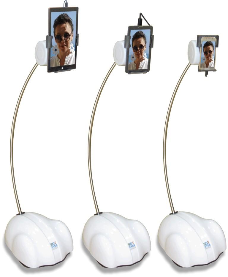 The BotEyes – Pad is a telepresence robot requiring you to supply your own tablet or smartphone, which you will attach to the robot to act as it’s eyes, ears, and mouth, the tablet can tilt a total of 120 degrees to provide plenty of vision below or above the actual height of the robot. Any tablet or smartphone 4″-11″ can be attached to the BotEyes, whether it has an Android, iOS (Apple), or Windows operating system. You can use any video conferencing app for the video communication. A few options include: Skype, Google Hangouts, WhatsApp, Viber, Facebook’s Messenger app, Google Duo, Line, FaceTime, and more.
